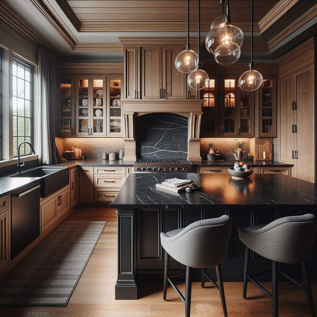 Feeling brave? Black quartz countertops can create a stunning contrast with oak cabinets. It’s one of those ideas for quartz countertop colour to match oak cabinets that really makes a statement. Here’s why black can look stunning;
